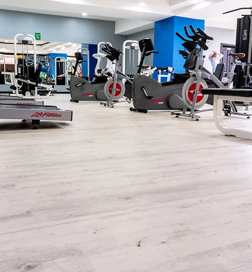 Instalación y suministro de Piso vinílico Loose Lay de 4mm de espesor en gimnasio de condominio Oakland z. 10. Área con un alto tráfico de personas.